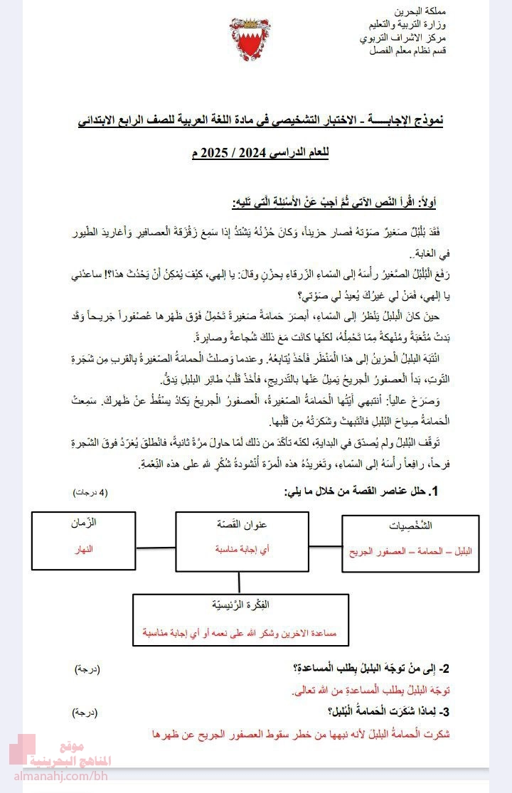 تم إيجاد الملف: نموذج الإجابة الورقة الثانية الاختبار التشخيصي