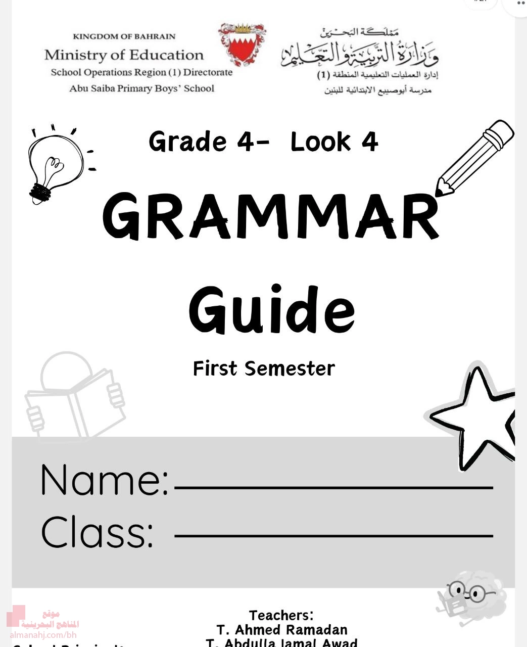 معلومات الملف: هذا الملف هو دليل قواعد اللغة الإنجليزية للصف الرابع، الفصل الدراسي الأول. إليك ملخص شامل للمحتوى مع شرح واضح:
