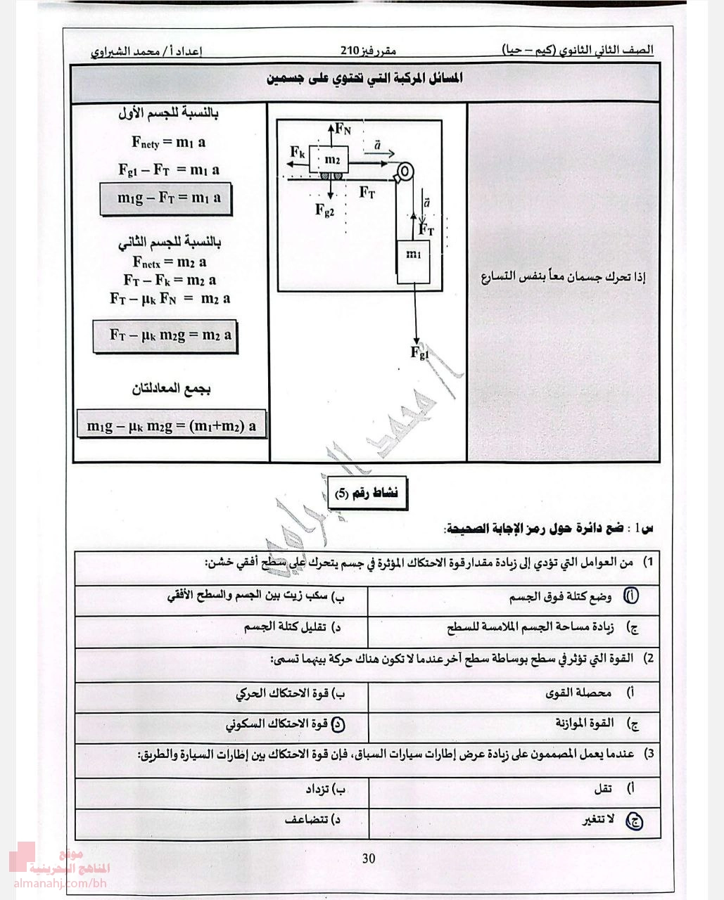 إجابة درس الاحتكاك و الحركة على مستوى مائل, الصف الثاني الثانوي, فيزياء, الفصل الأول, 2025-2026 | ||