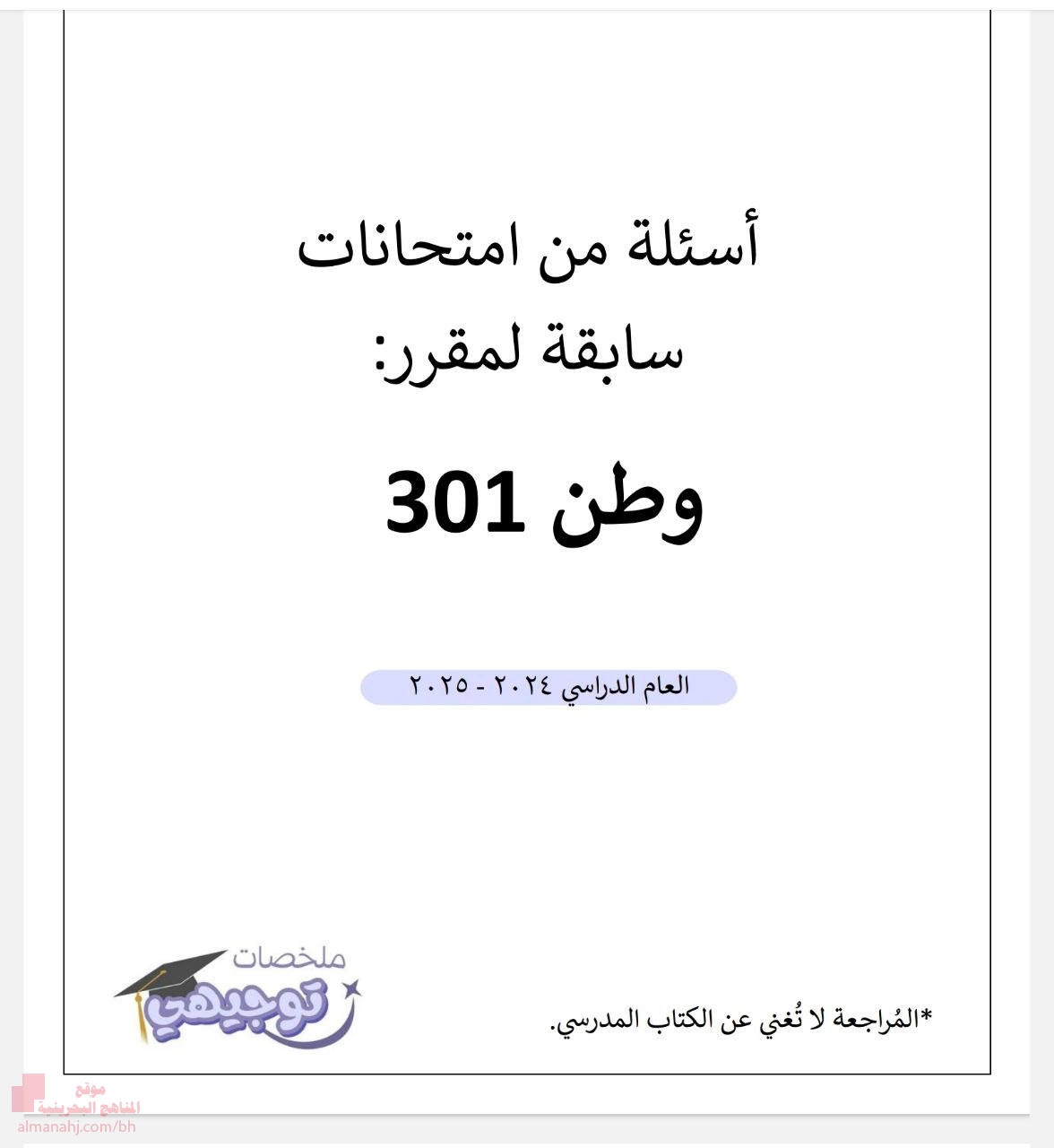 2. الصف الثالث الثانوي, تربية للمواطنة, أسئلة من امتحانات سابقة مقرر وطن 301