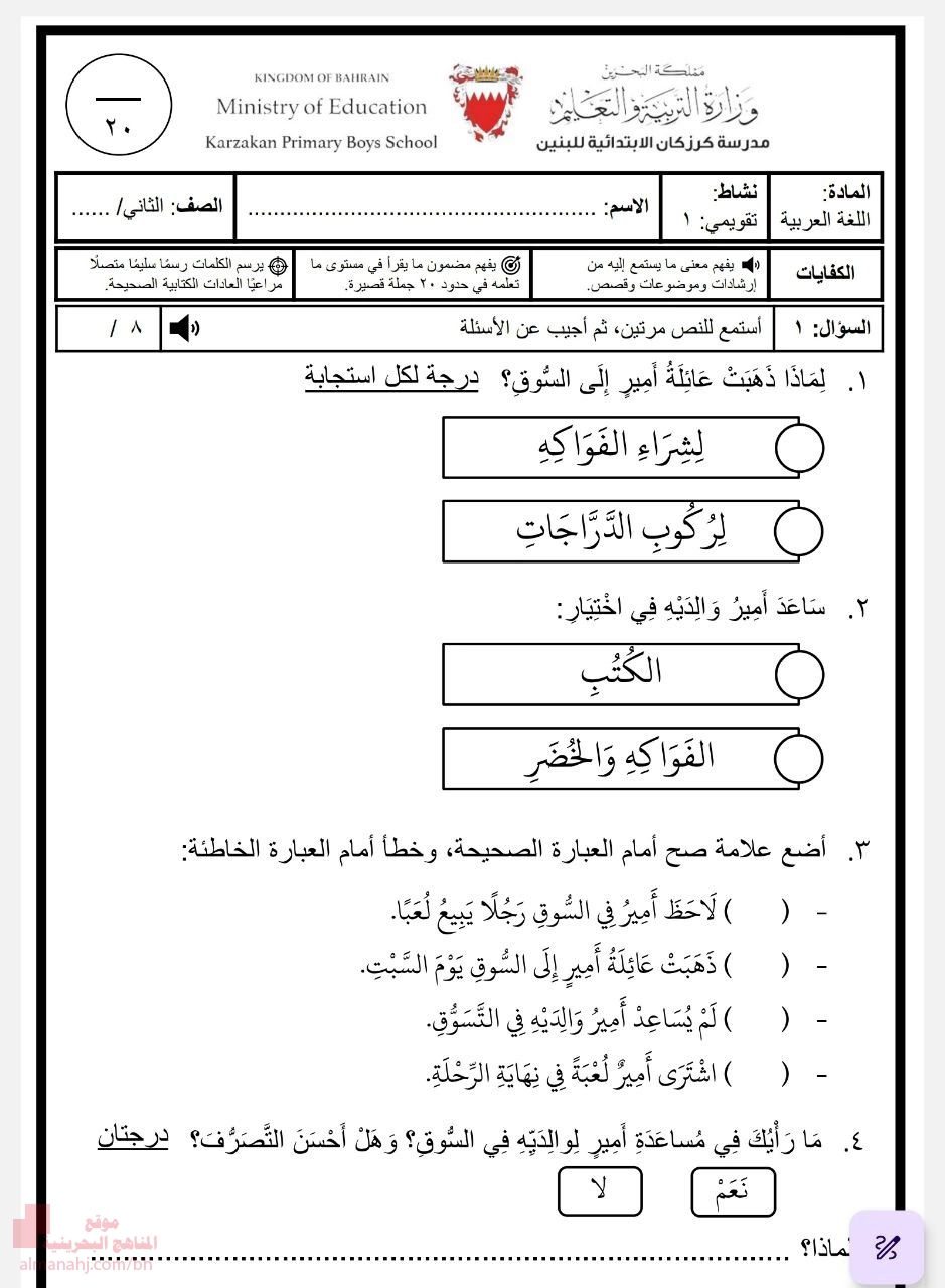 | هل تريد مادة أخرى لقسم الصف الثاني, الفصل الأول ؟ اخترها |