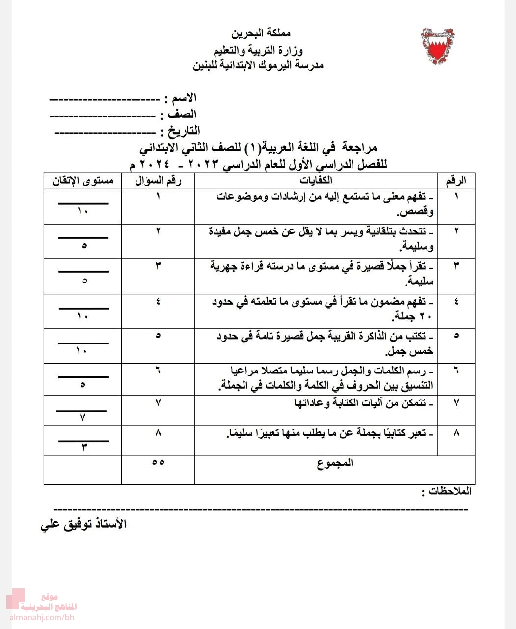 | مراجعة في اللغة العربية الاختبار الأول | ||