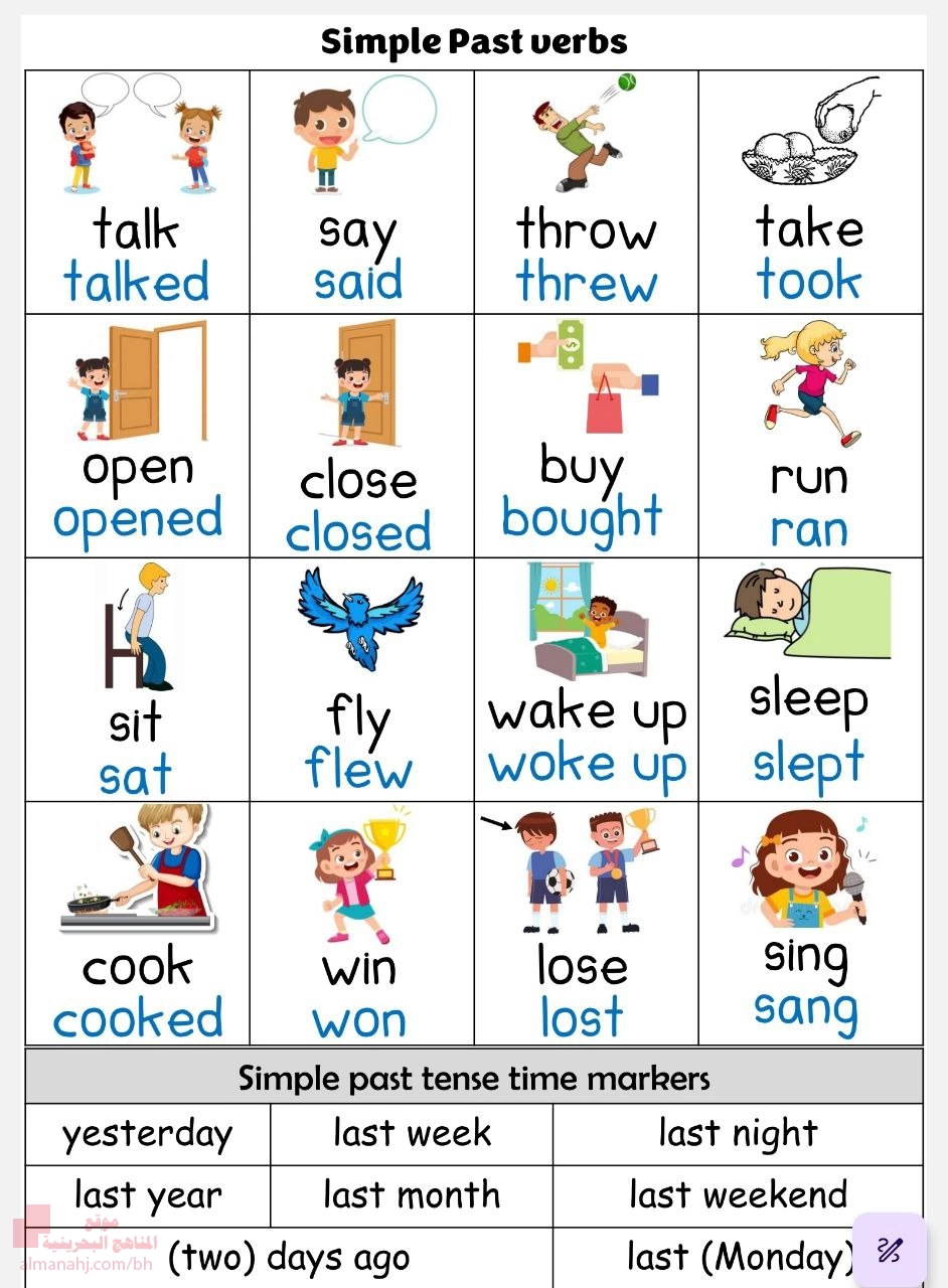 | تعليم الأفعال في زمن الماضي البسيط | ||