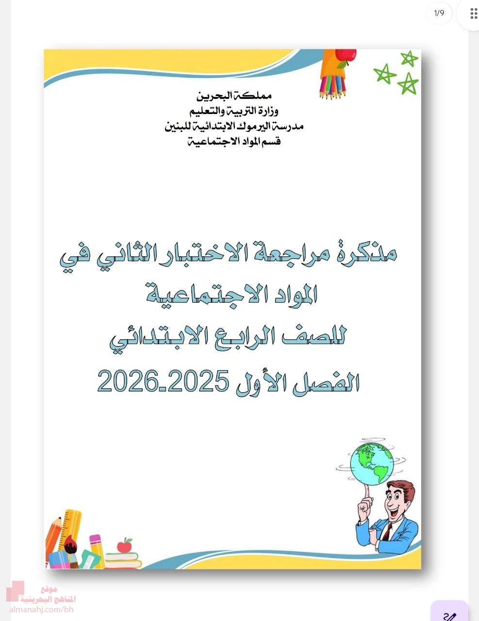 | مذكرة الاختبار الثاني في المواد الاجتماعية | ||