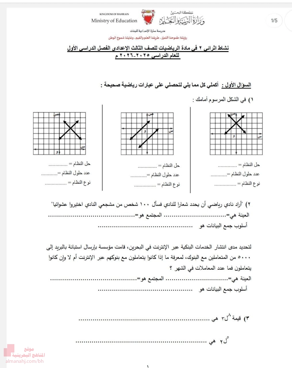 | تنويه: المناهج البحرينية هو موقع مجاني وغير رسمي ولا يتطلب اشتراك لتحميل الملفات، لذلك يرجى عدم دفع أي مبلغ أو الاشتراك من أجل تحميل الملفات. | |