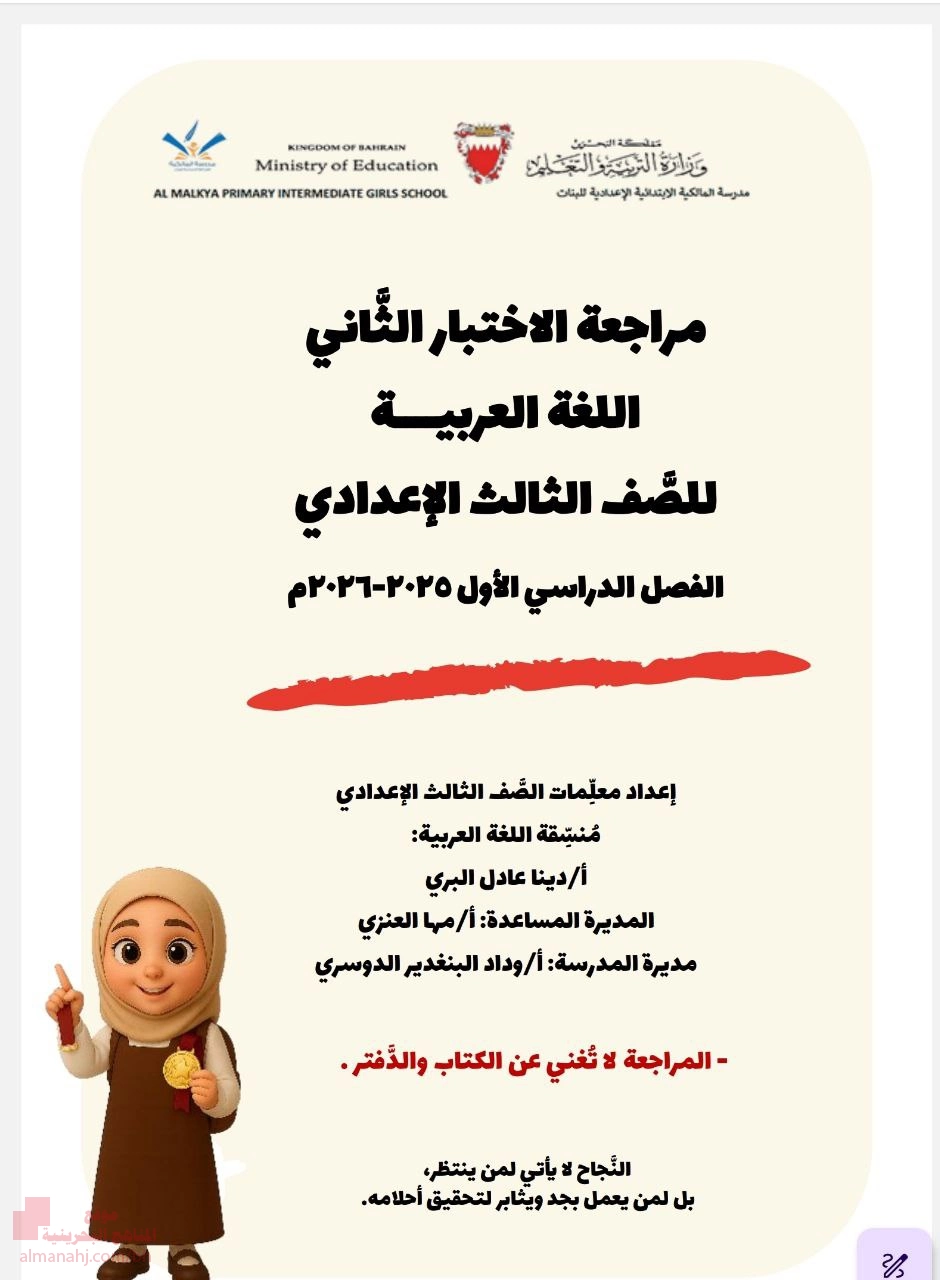 11. الصف التاسع, لغة عربية, مراجعة الاختبار الثاني في اللغة العربية