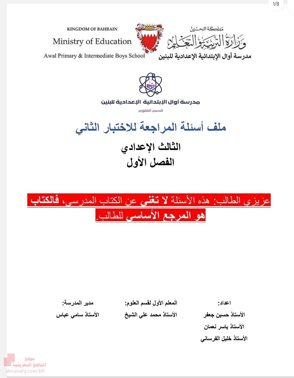 | تنويه: المناهج البحرينية هو موقع مجاني وغير رسمي ولا يتطلب اشتراك لتحميل الملفات، لذلك يرجى عدم دفع أي مبلغ أو الاشتراك من أجل تحميل الملفات. | |