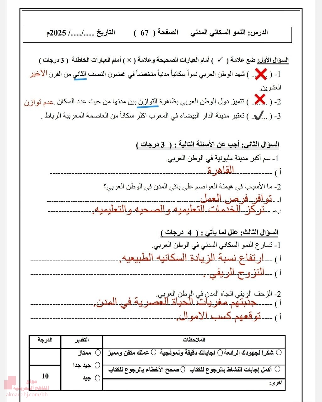 15. الصف التاسع, المواد الاجتماعية, مراجعة الاختبار الثاني في المواد الاجماعية