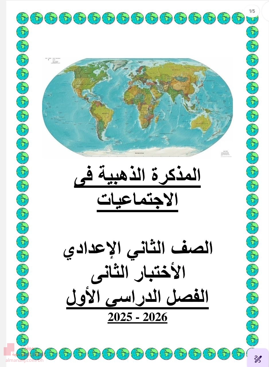 9. الصف الثامن, المواد الاجتماعية, المذكرة الذهبية لمراجعة الاختبار الثاني في المواد الاجتماعية