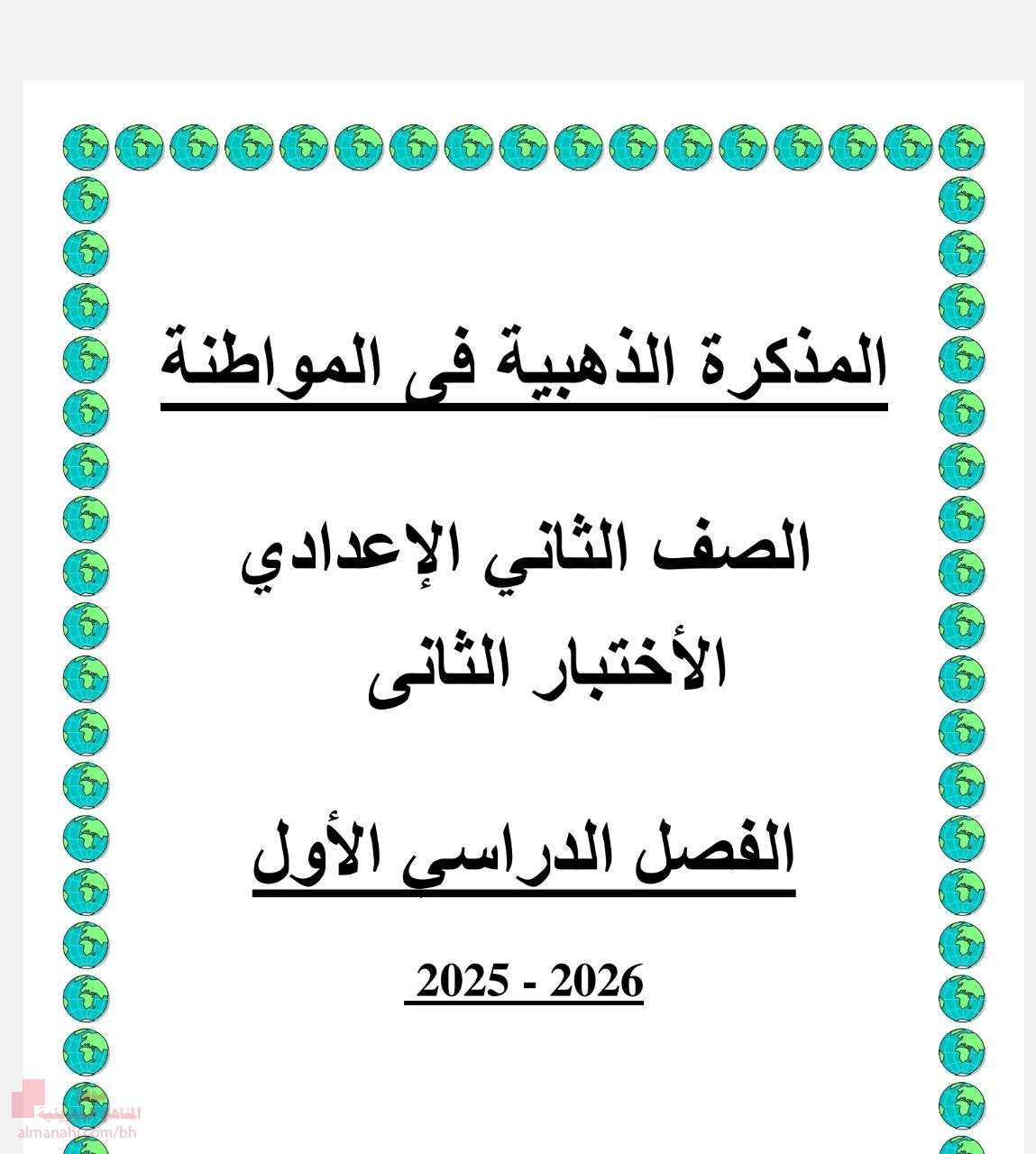 5. الصف الثامن, تربية للمواطنة, مراجعة الاختبار الثاني في التربية للمواطنة المذكرة الذهبية