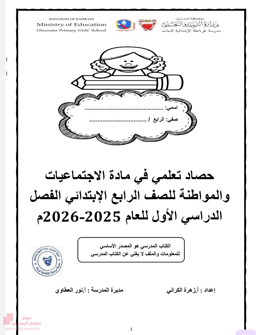 1. الصف الرابع, المواد الاجتماعية, الحصاد التعليمي في الاجتماعيات و التربية للمواطنة