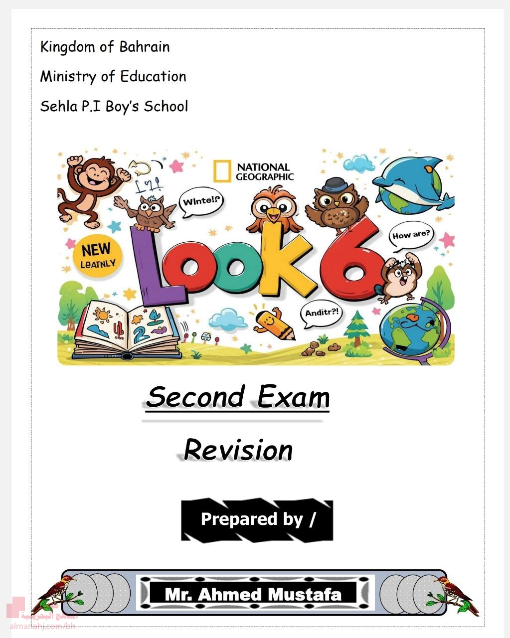9. الصف السادس, لغة انجليزية, مذكرة الاختبار الثاني في اللغة الإنجليزية
