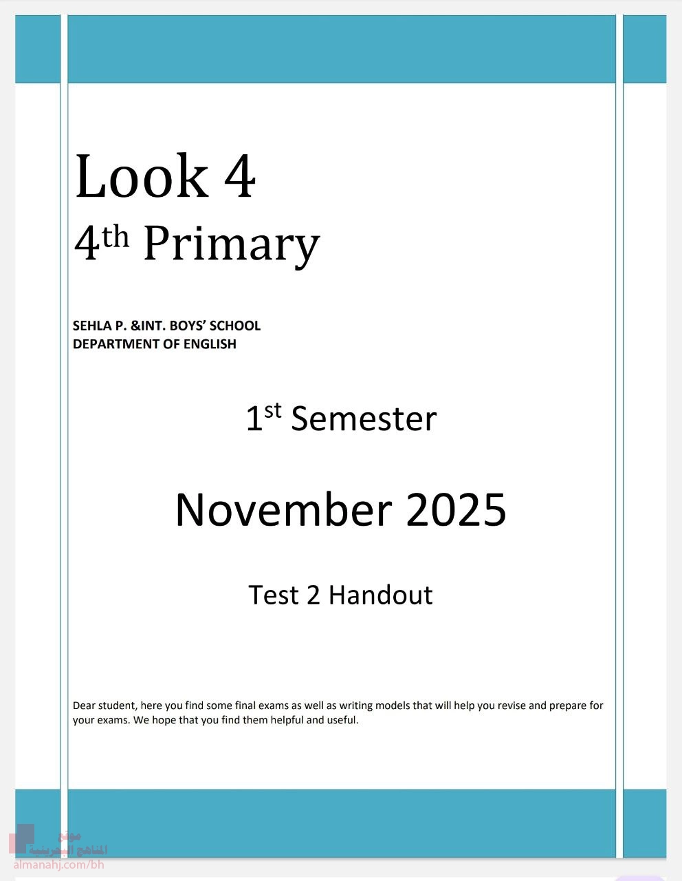 4. الصف الرابع, لغة انجليزية, مذكرة مراجعة اللغة الإنجليزية الاختبار الثاني للصف الرابع