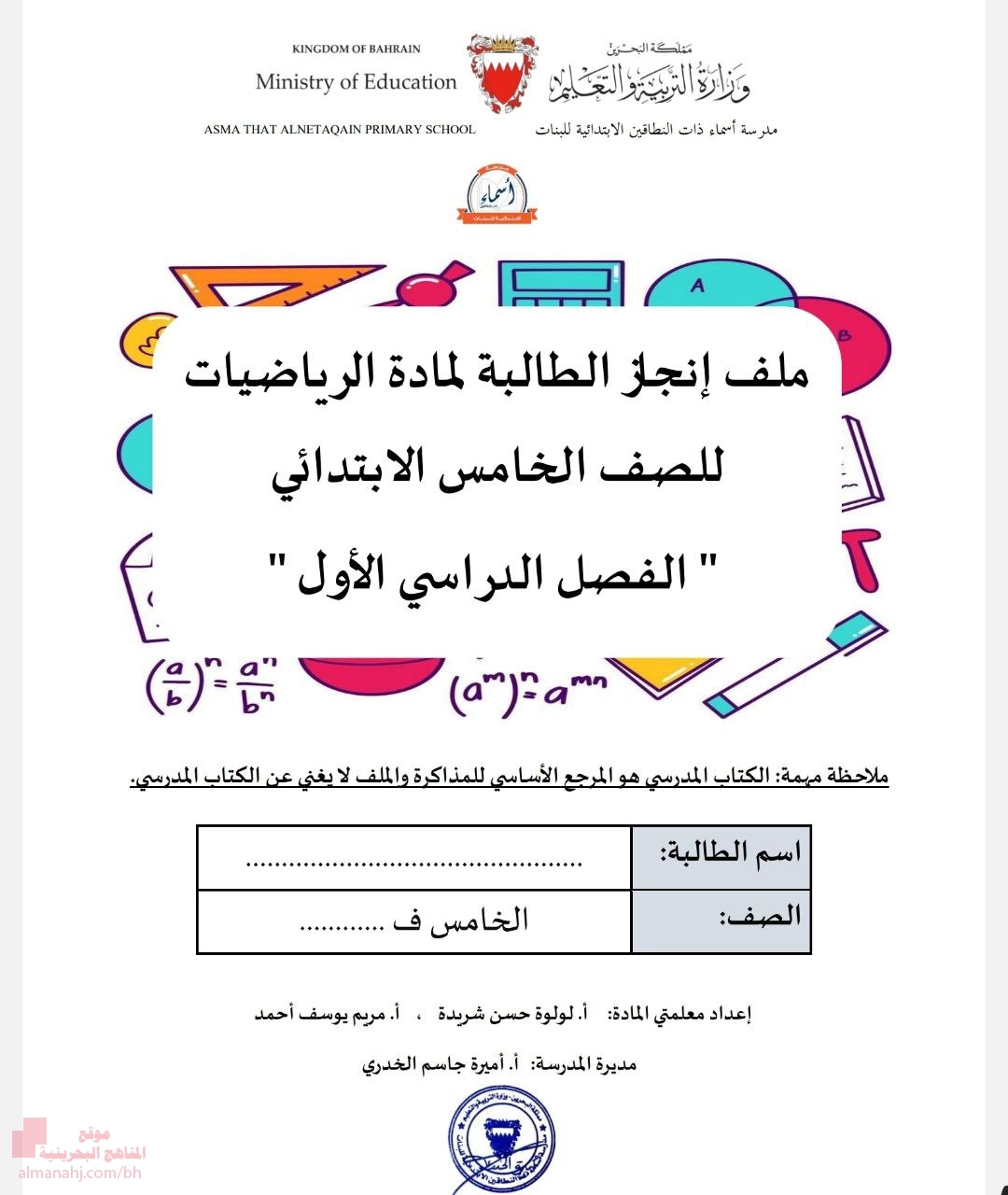 تم إيجاد الملف: مذكرة مراجعة و ملف إنجاز الطالب في الرياضيات للفصّل الدراسي الأوّل