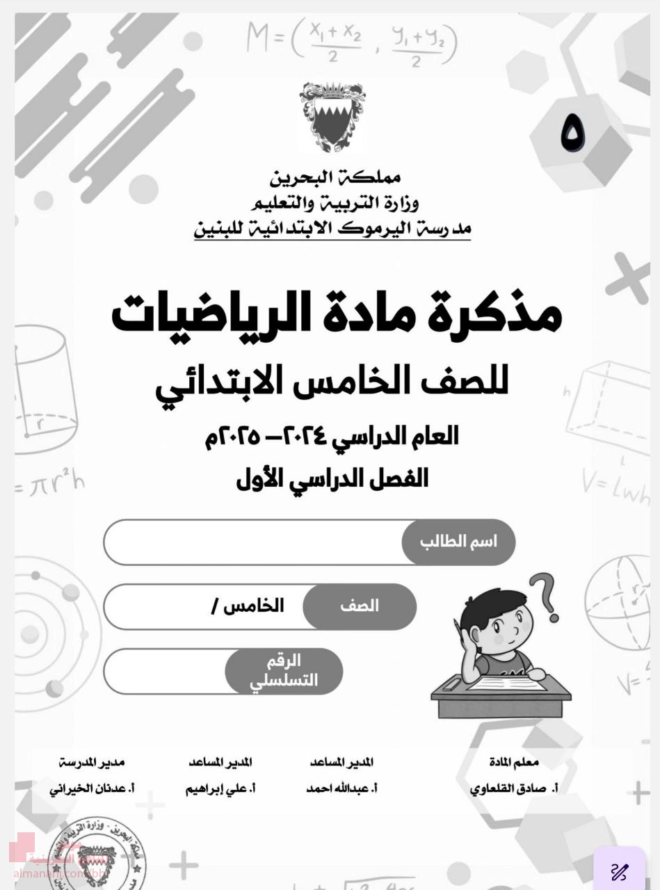 مذكرة مادة الرياضيات للصف الخامس, الصف الخامس, رياضيات, الفصل الأول, 2025-2026 - المناهج البحرينية