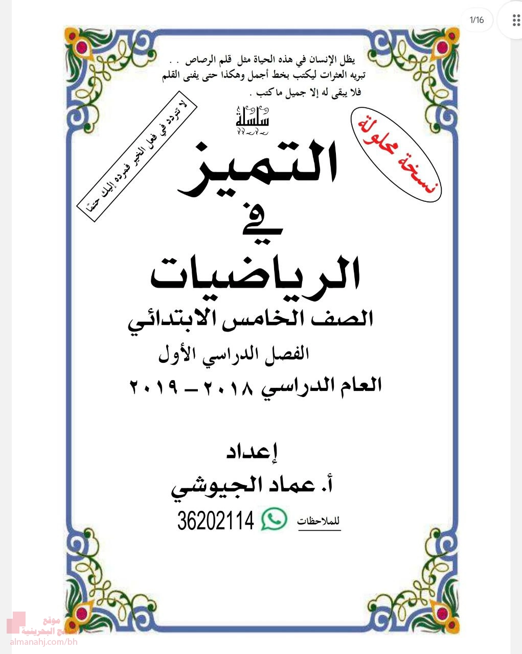 7. الصف الخامس, رياضيات, مذكرة مراجعة و ملف إنجاز الطالب في الرياضيات للفصّل الدراسي الأوّل