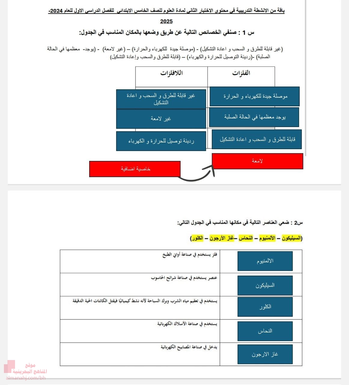 4. الصف الخامس, علوم, مراجعة الاختبار الثاني لمادة العلوم
