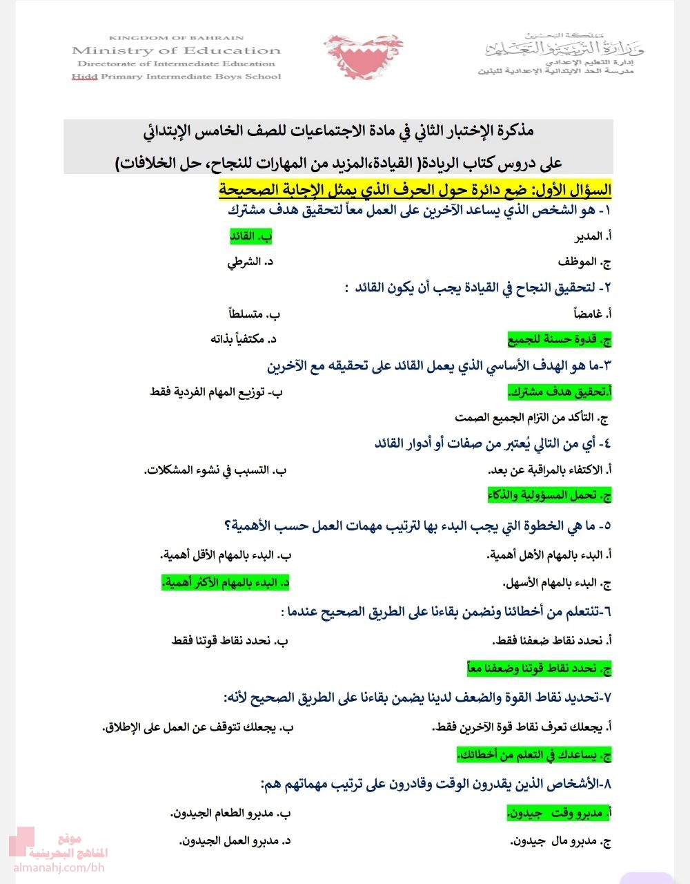 | إجابة مذكرة الاختبار الثاني في المواد الاجتماعية | ||