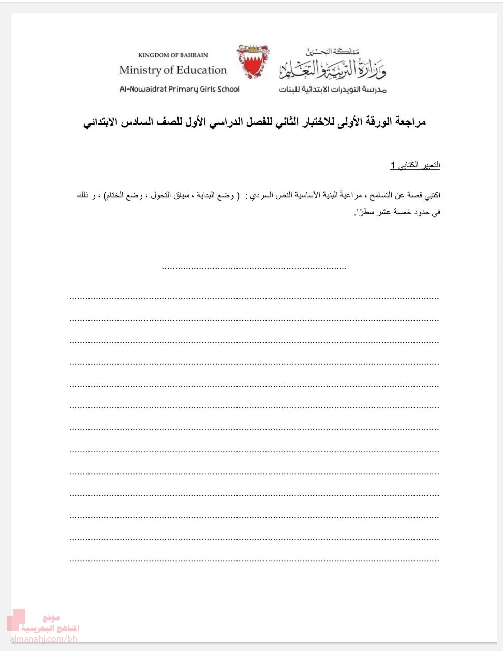 مراجعة الاختبار الثاني الورقة الأولى, الصف السادس, لغة عربية, الفصل الأول, 2025-2026 - المناهج البحرينية