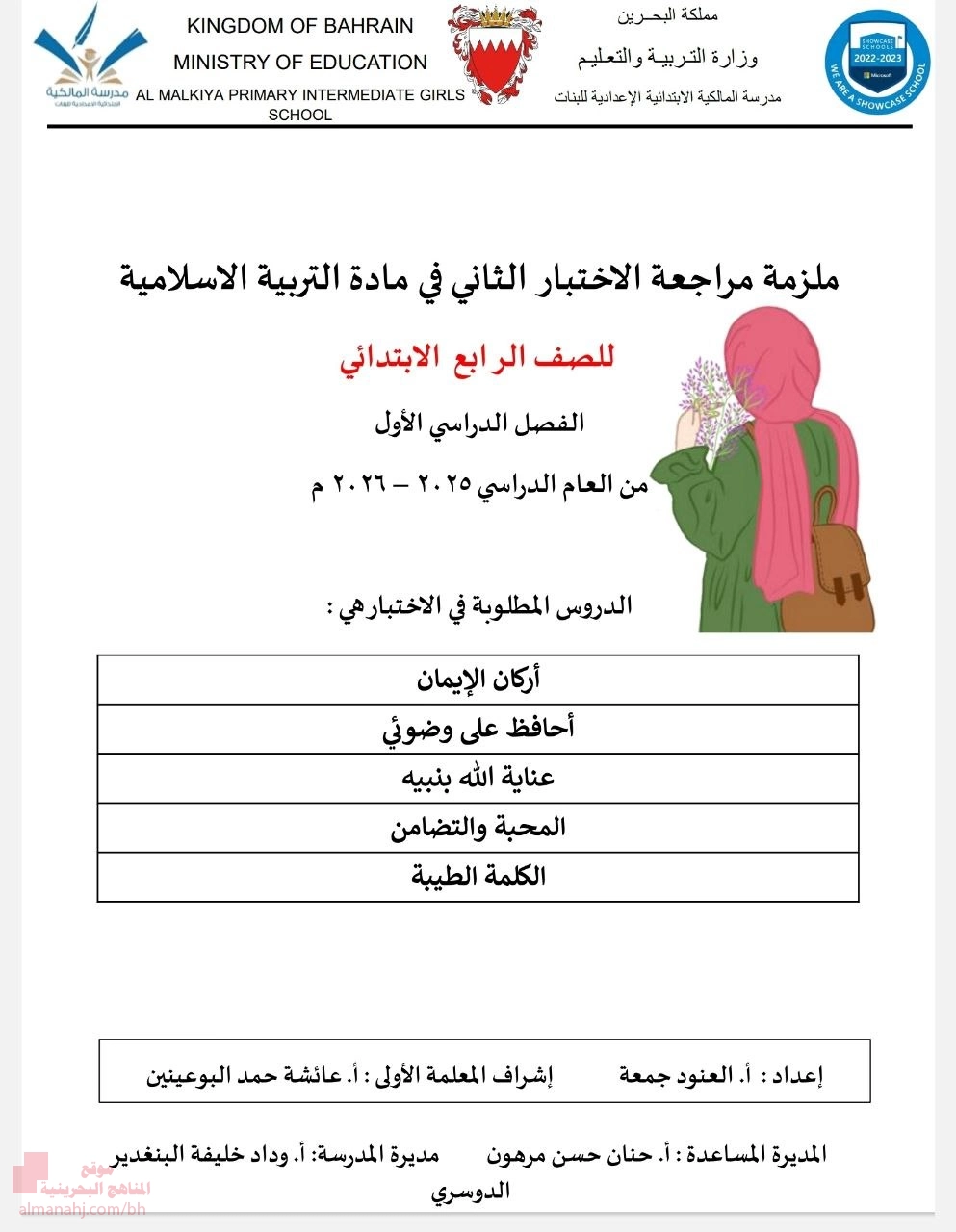 2. الصف الرابع, تربية اسلامية, مذكرة مراجعة الاختبار الثاني في التربية الإسلامية