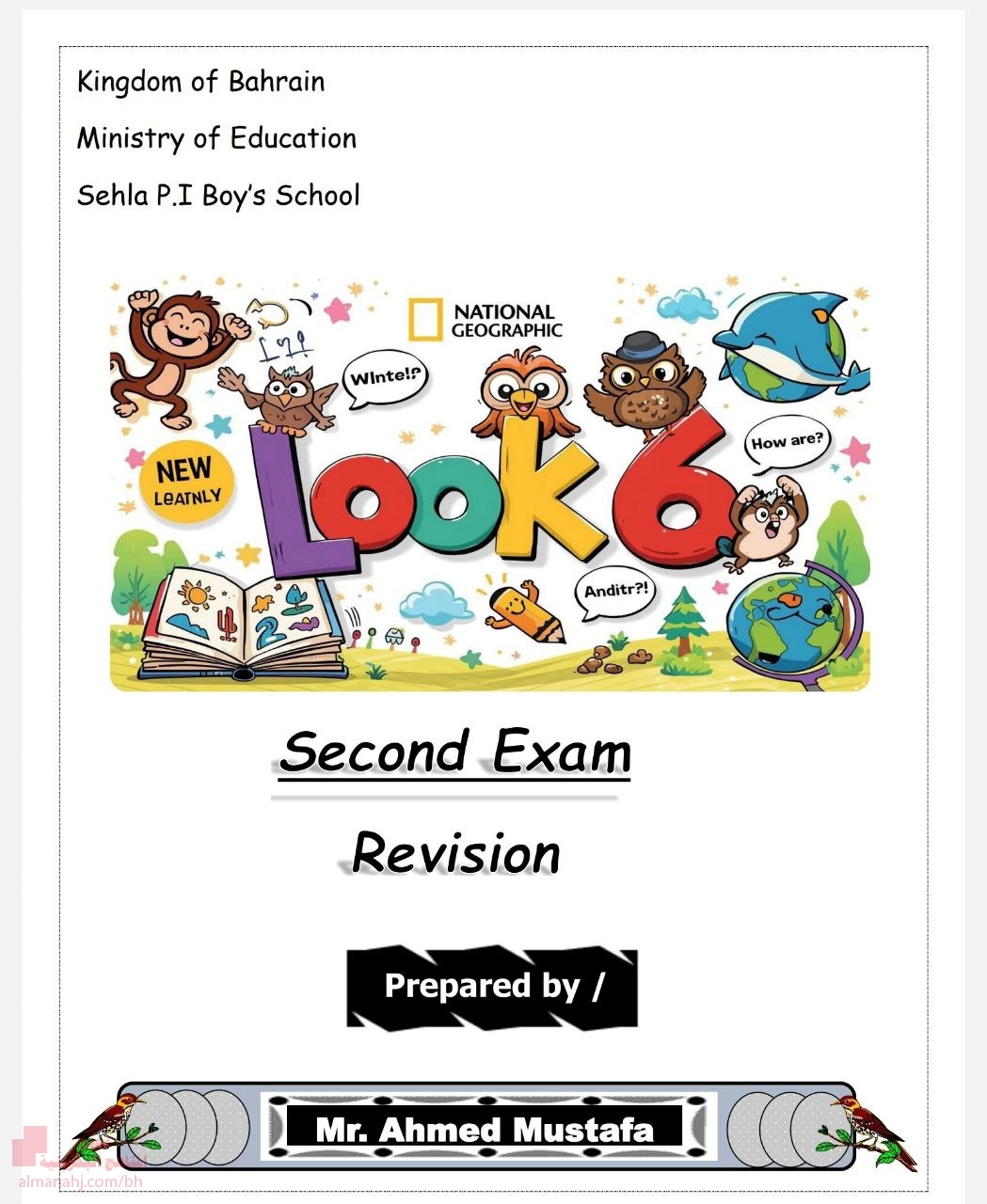 2. الصف السادس, لغة انجليزية, مذكرة مراجعة الاختبار الثاني