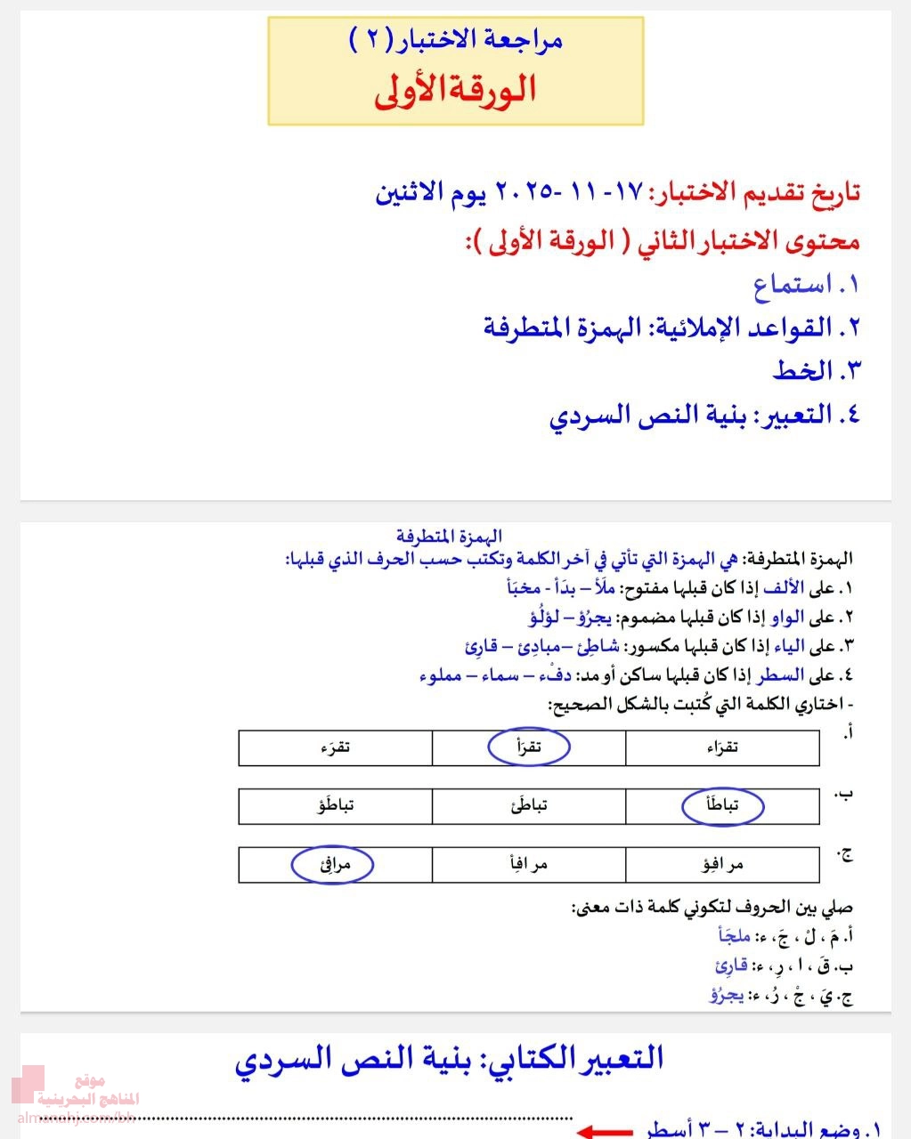 تم إيجاد الملف: مراجعة الاختبار الثاني لغة عربية الورقة الأولى