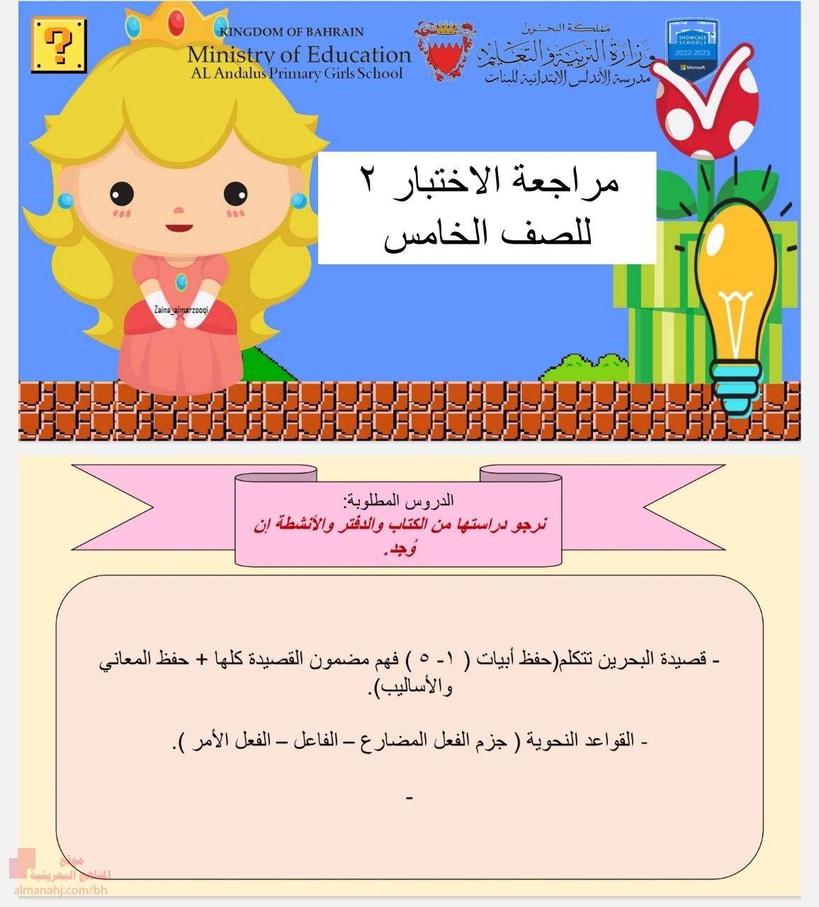 | مراجعة الاختبار الثاني في اللغة العربية | ||