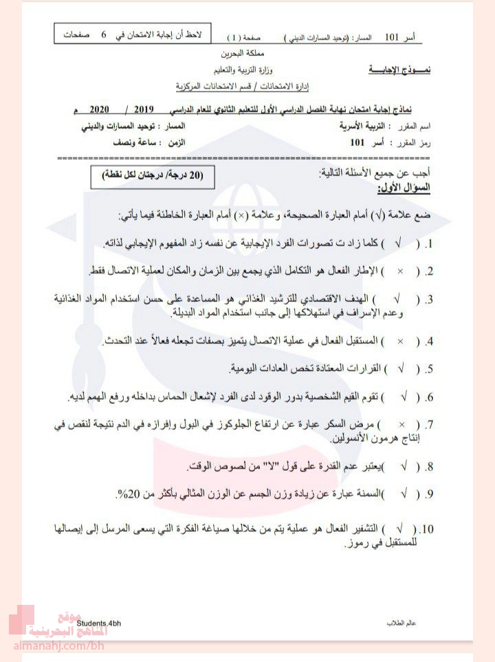 | أنت هنا: موقع المناهج ⇦ المناهج البحرينية ⇦ الصف الأول الثانوي ⇦ تربية أسرية ⇦ الفصل الأول ⇦ الامتحان النهائي |