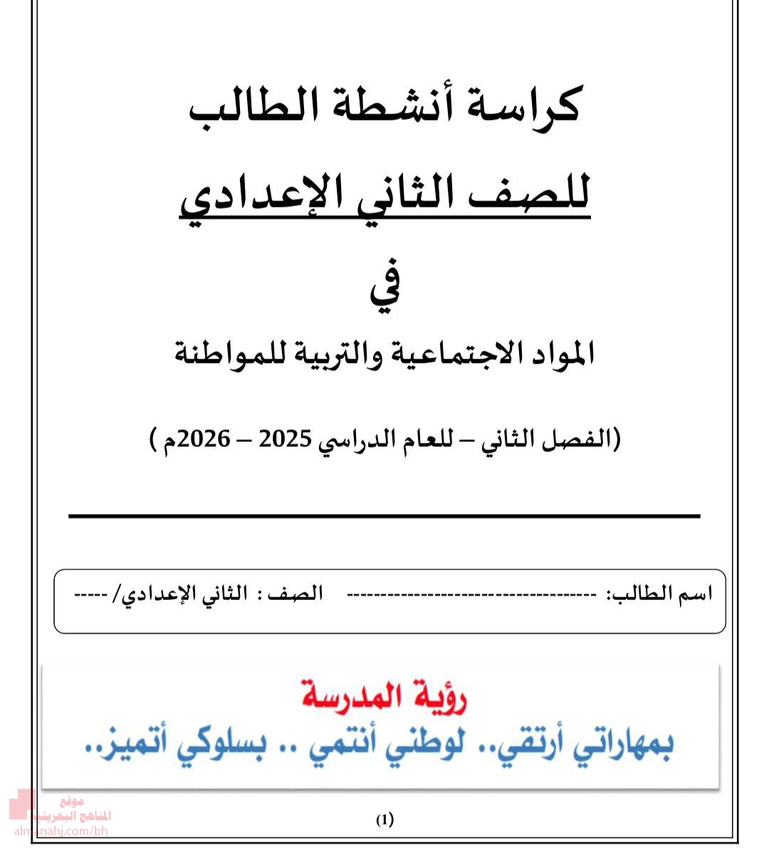 كراسة أنشطة الطالب 2025 و 2026م, الصف الثامن, تربية للمواطنة, الفصل الثاني, 2025/2026 - المناهج البحرينية
