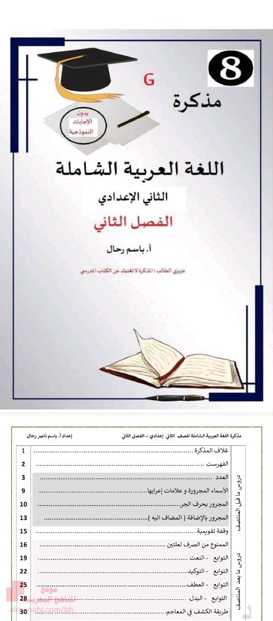 مذكرة ثانية شاملة للمنهج 2025 و2026م, باسم رحال, الصف الثامن, لغة عربية, الفصل الثاني, 2025/2026 - المناهج البحرينية