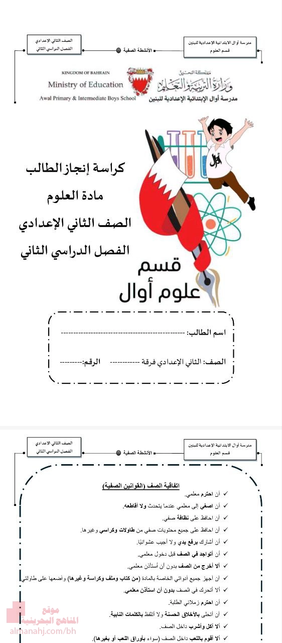 8. الصف الثامن, علوم, كراسة إنجاز الطالب 2025 و 2026