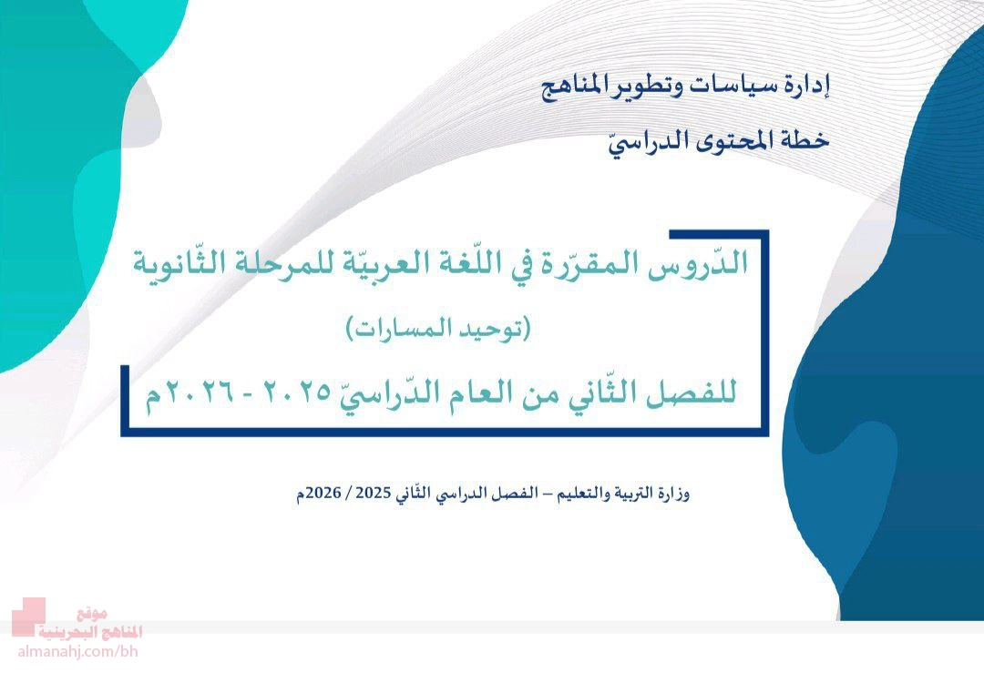 5. الصف الأول الثانوي, لغة عربية, المحتوى المطلوب خطة المحتوى المرحلة الثانوية توحيد المسارات 2025-2026م