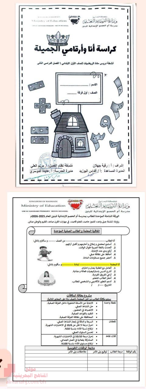 | أهلاً بكم جميعاً طلاباً ومدرسين وأهالي طلبة ومهتمين، في قسم دولة البحرين ، نحن الآن في الفصل الثاني من العام الدراسي 2025/2026 وتاريخ اليوم 2026/03/06 م | |