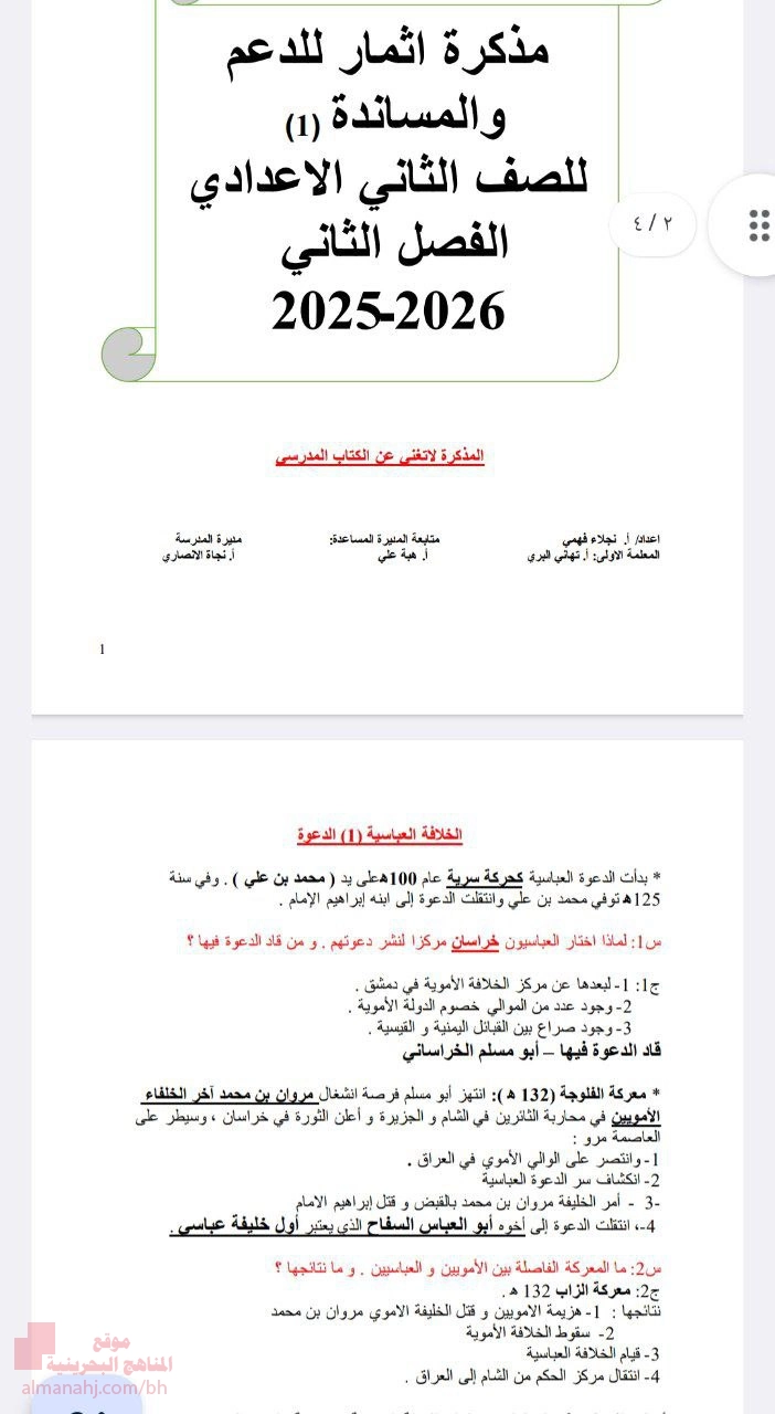 أهلاً بكم جميعاً طلاباً ومدرسين وأهالي طلبة ومهتمين، في قسم دولة البحرين ، نحن الآن في الفصل الثاني من العام الدراسي 2025/2026 وتاريخ اليوم 2026/03/16 م