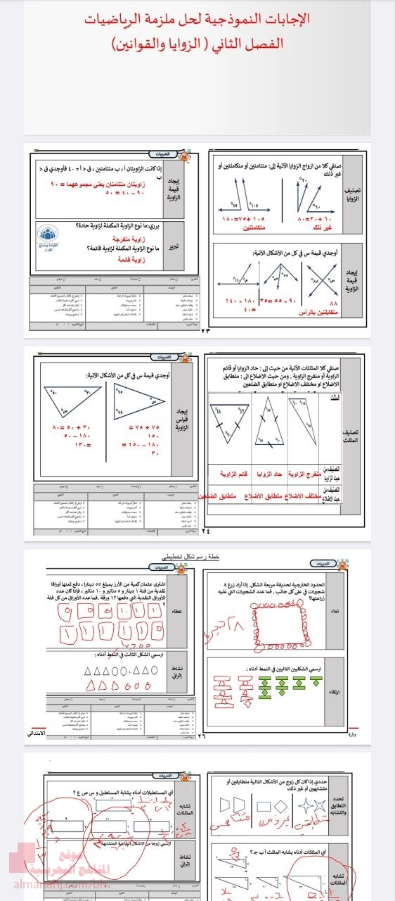 | الإجابات النموذجية لحل ملزمة الزوايا والقوانين | ||