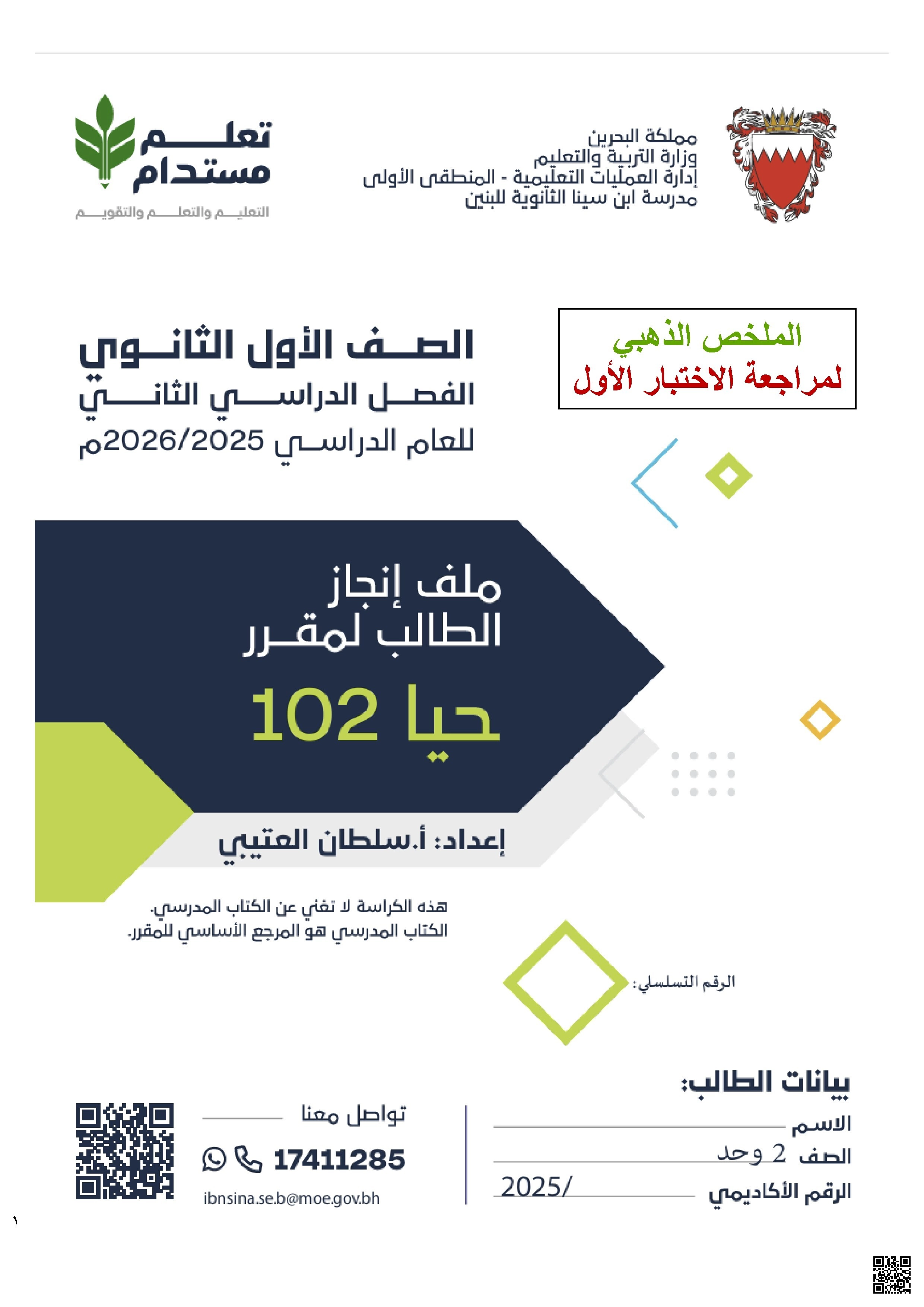 مذكرة مراجعة شاملة حيا102 تضم مدخل إلى علم الأحياء العلم في حياتنا اليومية وتصنيف العلم