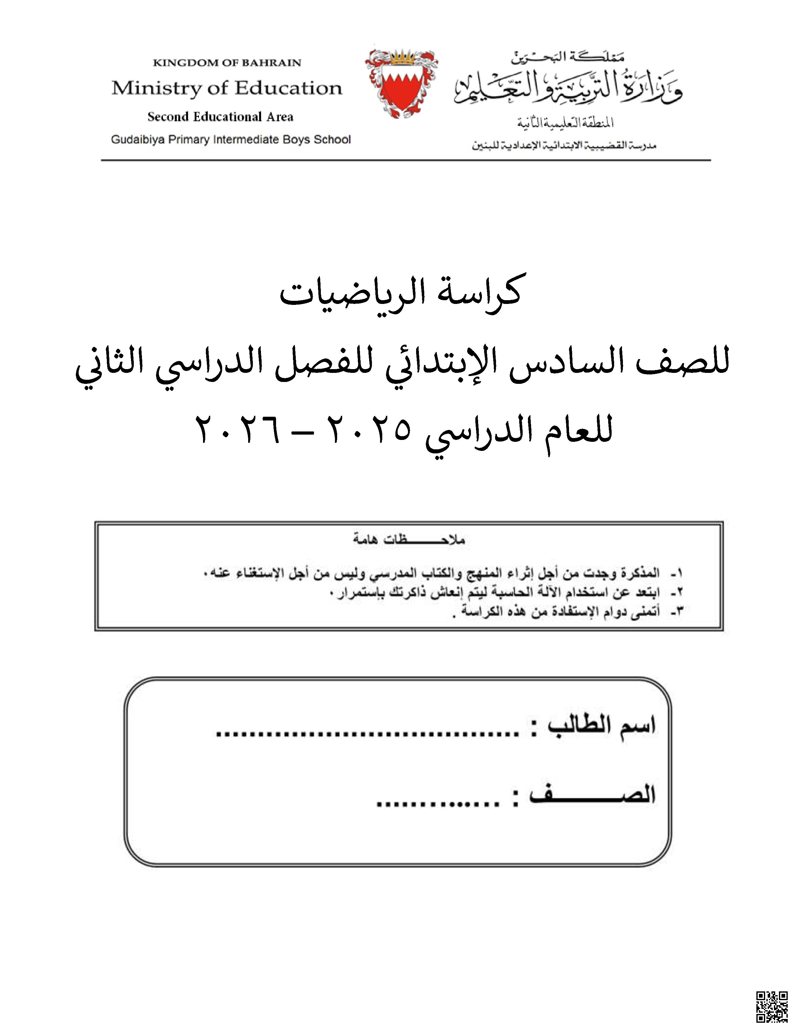 كراسة مراجعة شاملة للمنهج 2025-2026م