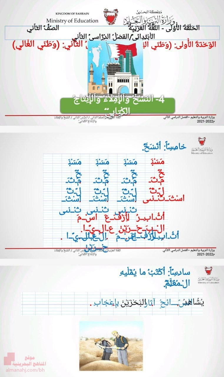 الوحدة الأولى وطني البحرين الدرس الثاني وطني الغالي النسخ والإملاء بحسب الصف الثاني في مادة اللغة العربية – الفصل الثاني