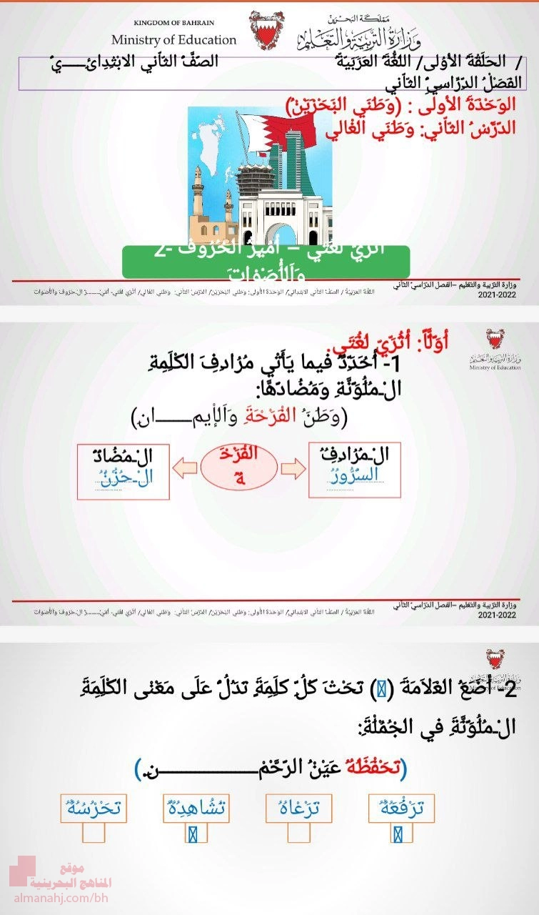 الوحدة الأولى وطني البحرين الدرس الأول فرحة القرقاعون أحلل وأركب تدريب4