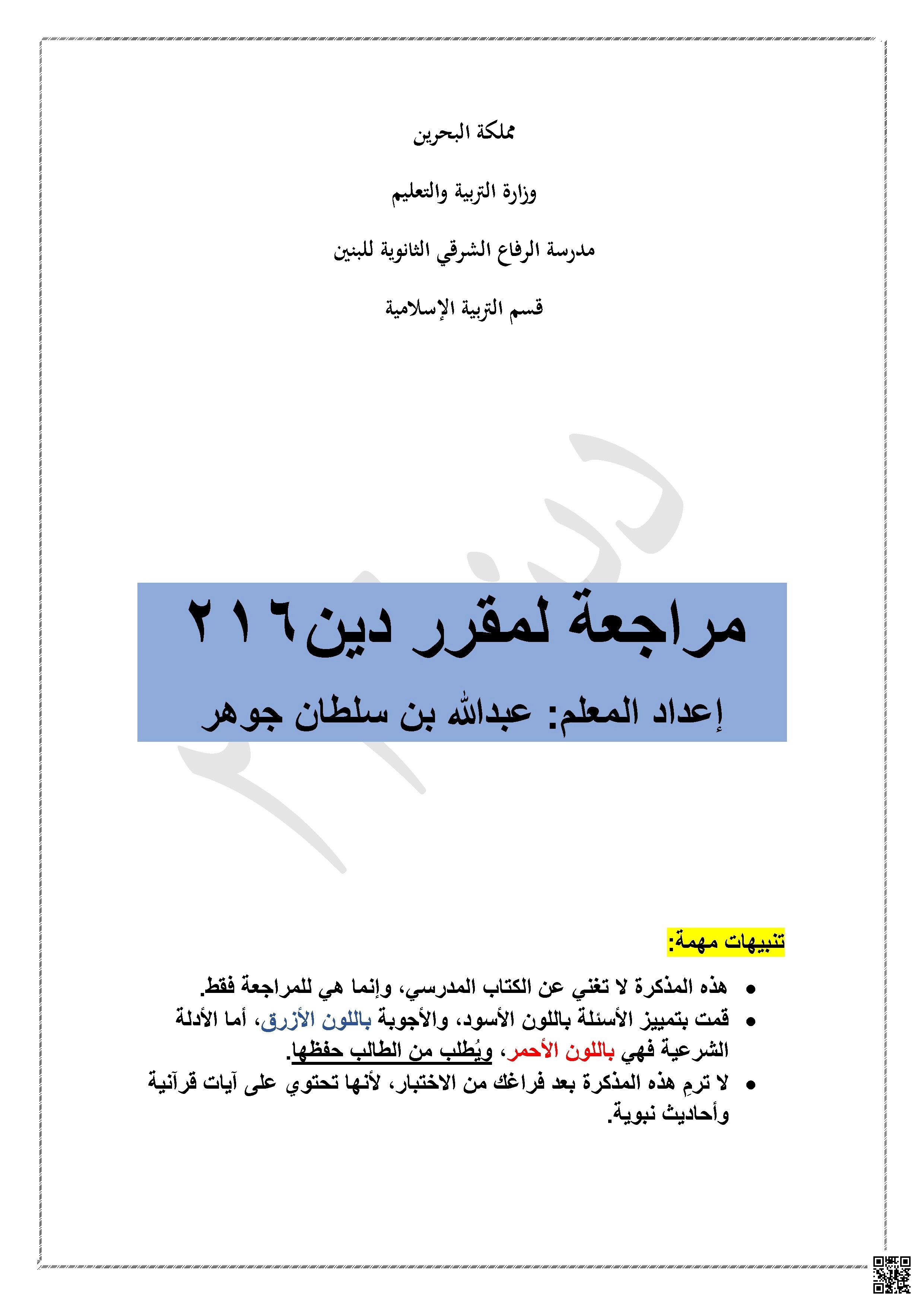 شرح درس السبق، مقرر دين 326، الثالث الثانوي الأدبي