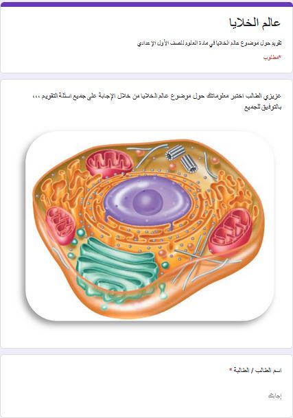 اضغط هنا لتحميل وعرض ( تدريب الكتروني في درس عالم الخلايا )
