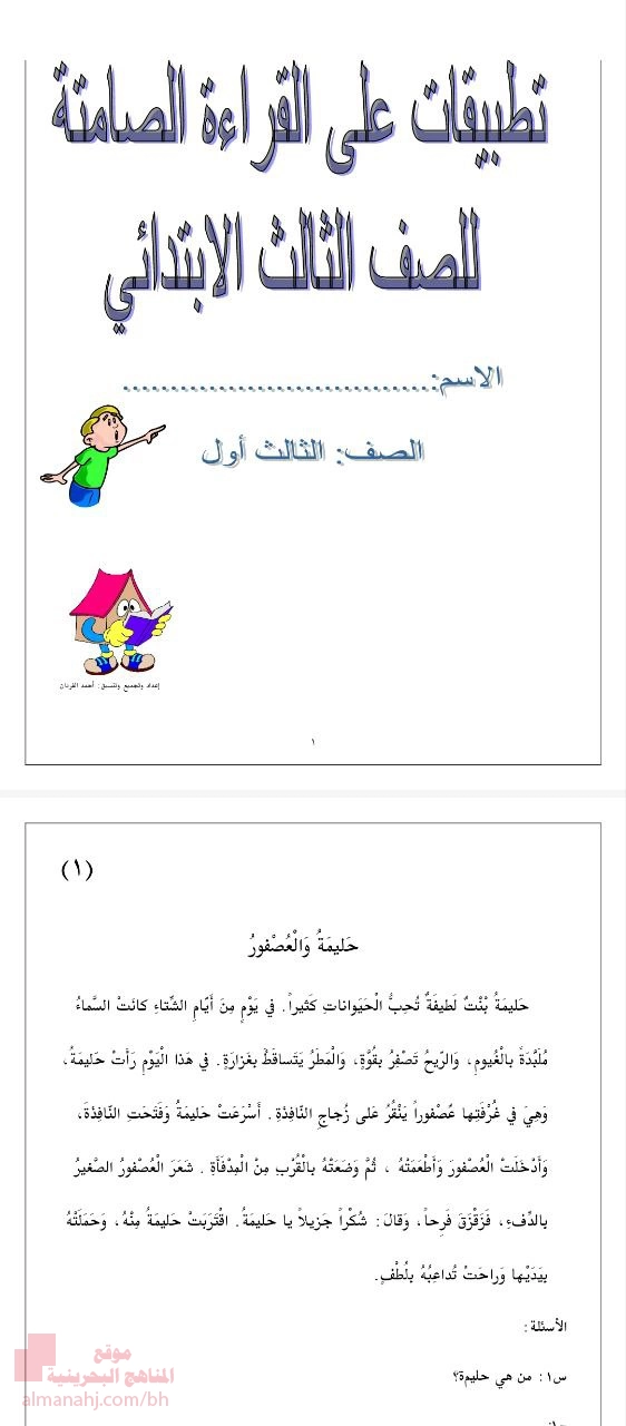 معلومات الملف: نضع بين أيديكم ملفاً خاصاً بعنوان مذكرة القراءة الصامتة للصف الثالث الإبتدائي، وتتجلى قيمة الملف وأهميته في تعريف الطالب على معلومات المذكرة ومضامينها، وذلك وفق منهاج مملكة البحرين.