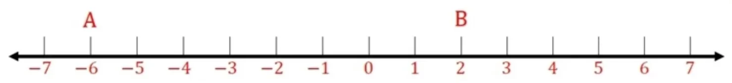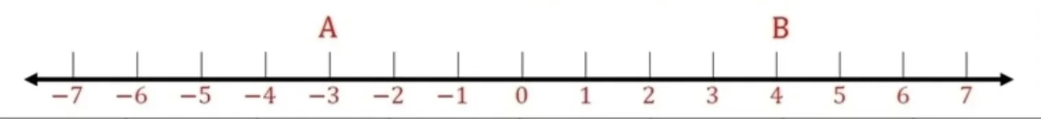 باستعمال خط الأعداد أوجد المسافة بين النقطتين \(A, B\)