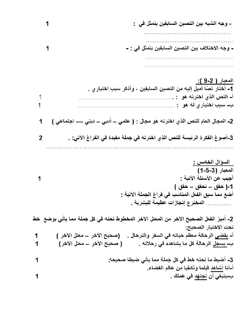 تم إيجاد الملف: نموذج اختبار في مادة اللغة العربية