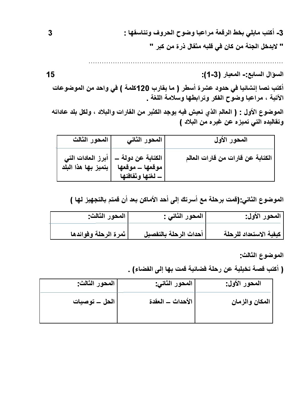 7 اوراق في مادة اللغة العربية للصف السابع للفصل الدراسي الثاني تتضمن نموذج اختبار تابع للادارة العامة لمنطقة الاحمدي التعليمية