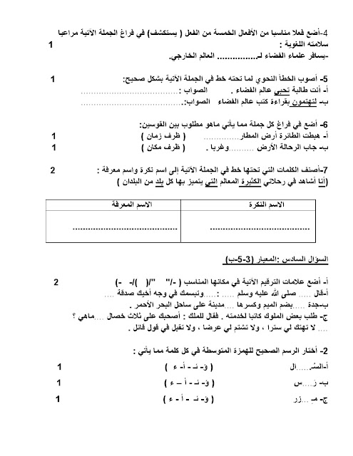 نموذج اختبار في مادة اللغة العربية - إعداد: منطقة الأحمدي التعليمية