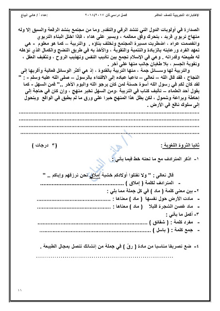 نماذج اختبارات تجريبية في مادة اللغة العربية - إعداد: هاني البياع