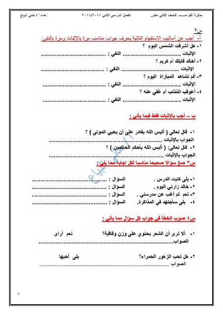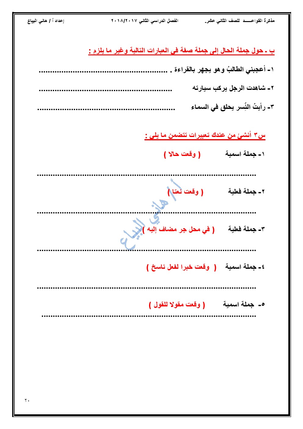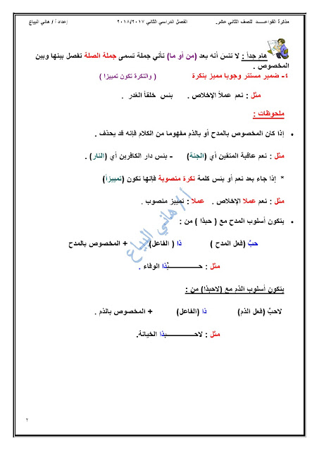 قواعد مهمة في مادة اللغة العربية - إعداد: هاني البياع | ||