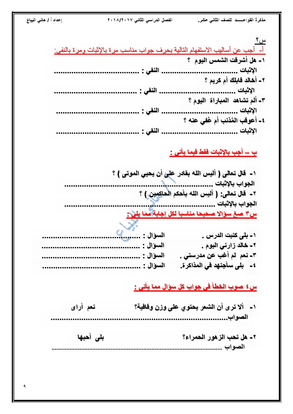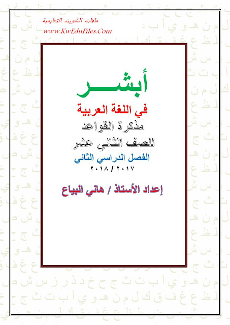 معلومات الملف: 26 ورقة في مادة اللغة العربية للصف الثاني عشر للفصل الدراسي الثاني تتضمن قواعد مهمة | ||