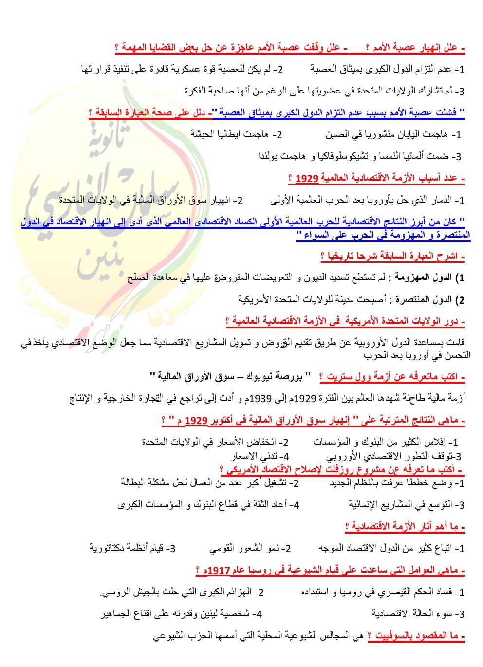 تم إيجاد الملف: مراجعات مهمة في مادة التاريخ